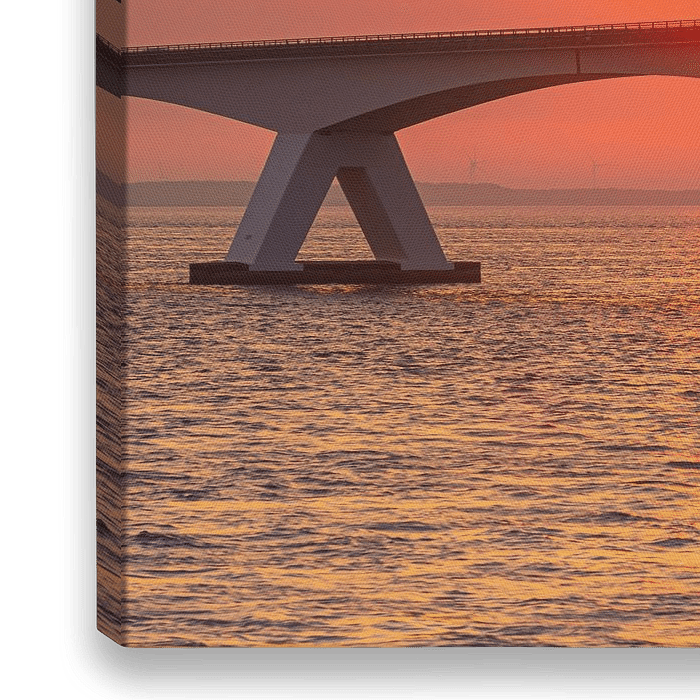 Bestelle dieses Landschafts-Wandbild Sonnenaufgang an der Zeelandbrug-Brücke, Zeeland, Niederlande von Henk Meijer Photography als Reproduktion auf Leinwand, Alu-Dibond, als Poster, Fototapete oder Acrylglasbild.