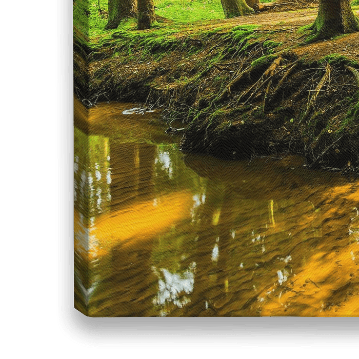 Wald Panorama mit Bach und Sonnenstrahlen
