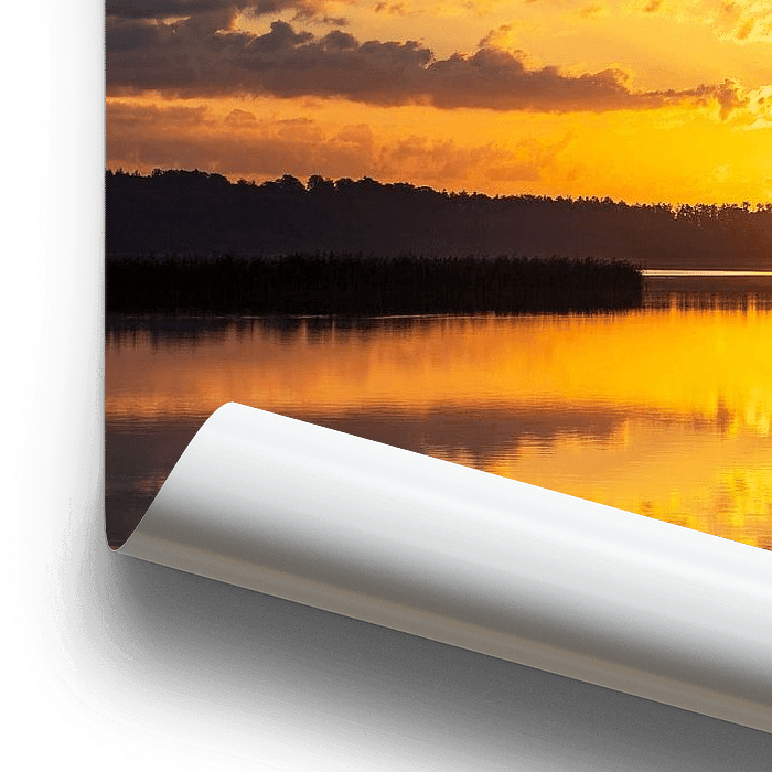 Bestelle dieses Landschafts-Wandbild Sonnenaufgang in Seedorf am Schaalsee mit Wolken und Spiegelung von Rico Ködder als Reproduktion auf Leinwand, Alu-Dibond, als Poster, Fototapete oder Acrylglasbild.