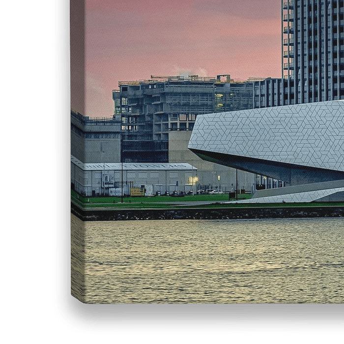 Das EYE Filminstitut in Amsterdam. Das Gebäude befindet sich gegenüber dem Hauptbahnhof, am Nordufer des Flusses IJ. Der A'DAM Tower ist ein achtzig Meter hoher Turm am Ufer des IJ im Norden von Amsterdam. Das Gebäude war daher vielen Amsterdammer besser bekannt als "Muschel-Turm".