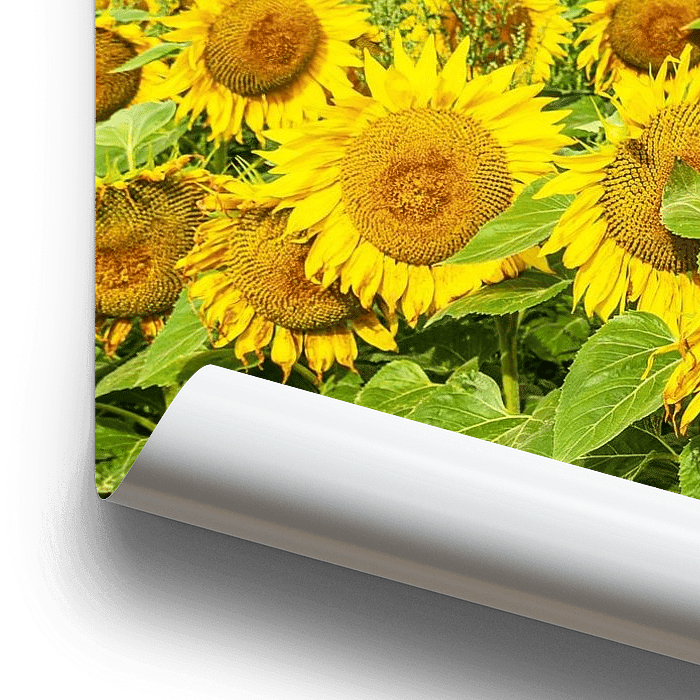 Bestelle dieses Landschafts-Wandbild Sonnenblumenfeld zwischen Stäbelow und Clausdorf bei Rostock von Rico Ködder als Reproduktion auf Leinwand, Alu-Dibond, als Poster, Fototapete oder Acrylglasbild.
