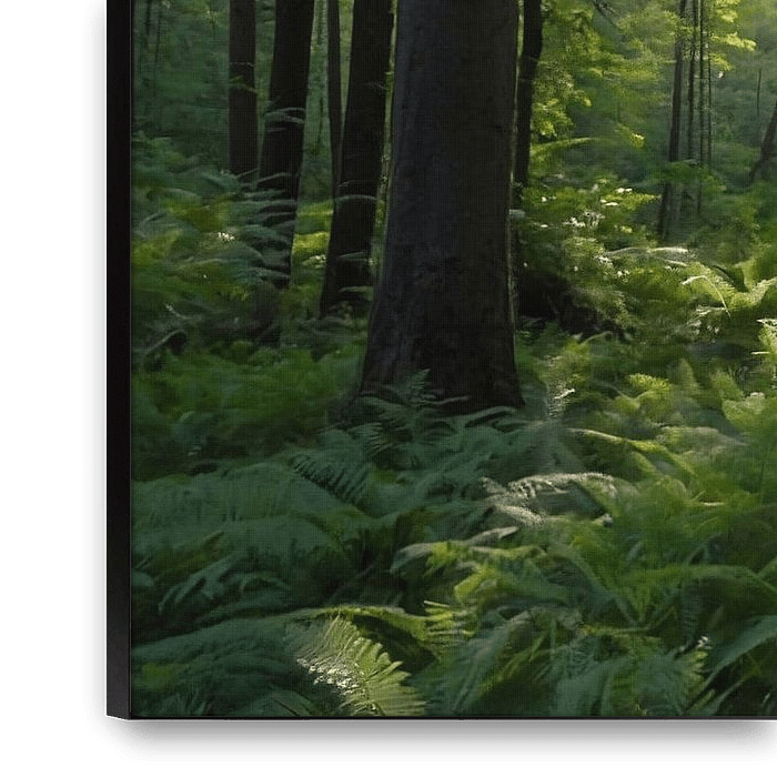Dieses wunderschöne Motiv zeigt einen ruhigen Sommerwald, in dem die Sonnenstrahlen durch das dichte Blattwerk dringen und den Wald in ein bezauberndes Licht hüllen. Die leuchtenden Grüntöne und die Schatten der Bäume schaffen eine beruhigende und erfrischende Szene, perfekt, um die Natur in Ihr Zuhause zu bringen. Dieses Kunstwerk…