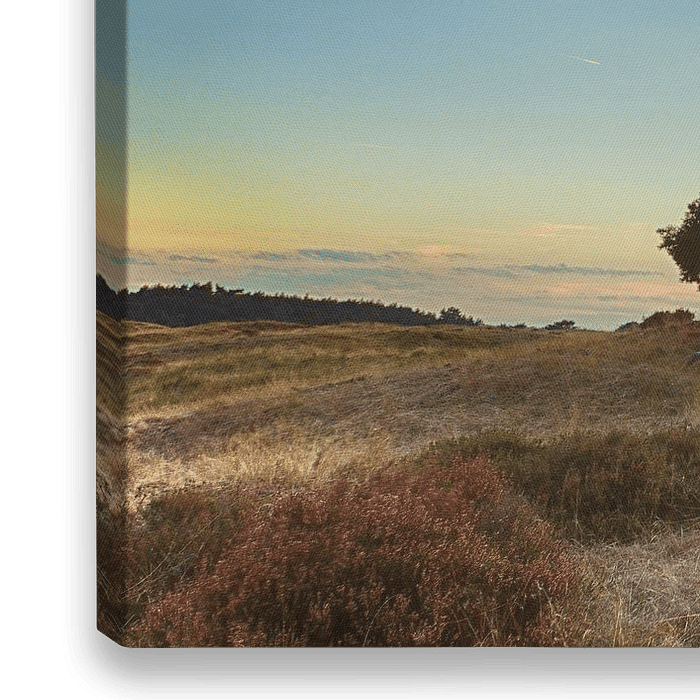 Bestelle das Foto Sonnenuntergang Nationalpark de Hoge Veluwe von John Leeninga als Reproduktion auf Leinwand, Alu-Dibond, als Poster, Fototapete oder Acrylglasbild.