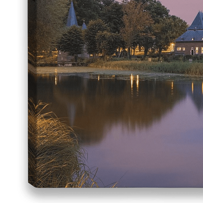 Bestelle das Foto Sonnenuntergang auf Schloss Hoensbroek von Henk Meijer Photography als Reproduktion auf Leinwand, Alu-Dibond, als Poster, Fototapete oder Acrylglasbild.