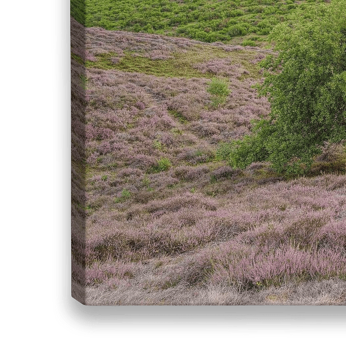 Sonnenuntergang in der Heidelandschaft im Nationalpark Veluwezoom bei Arnheim im August.