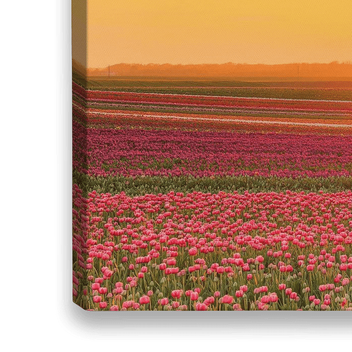 Bestelle dieses Blumen-Wandbild Sonnenuntergang in einem Tulpenfeld von Michael Valjak als Reproduktion auf Leinwand, Alu-Dibond, als Poster, Fototapete oder Acrylglasbild.