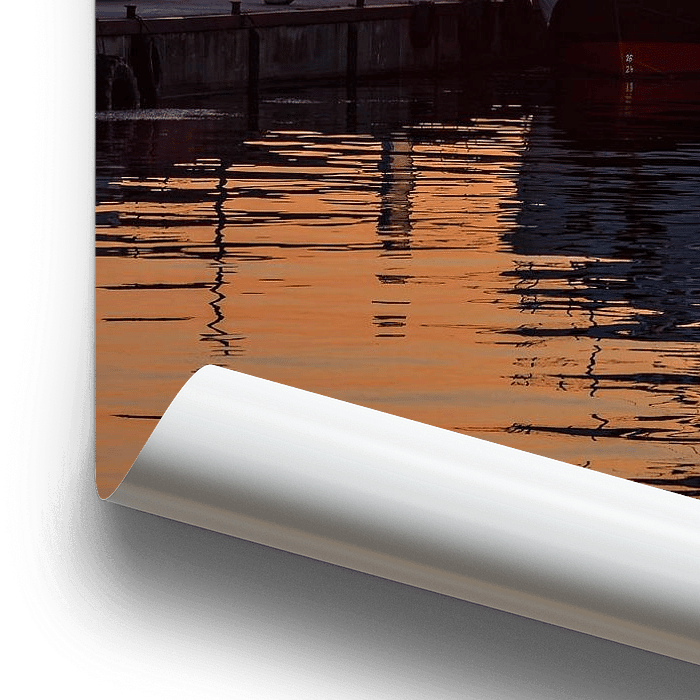 Bestelle das Foto Sonnenuntergang und Fischerboote im Hafen der Stadt Sassnitz auf von Rico Ködder als Reproduktion auf Leinwand, Alu-Dibond, als Poster, Fototapete oder Acrylglasbild.