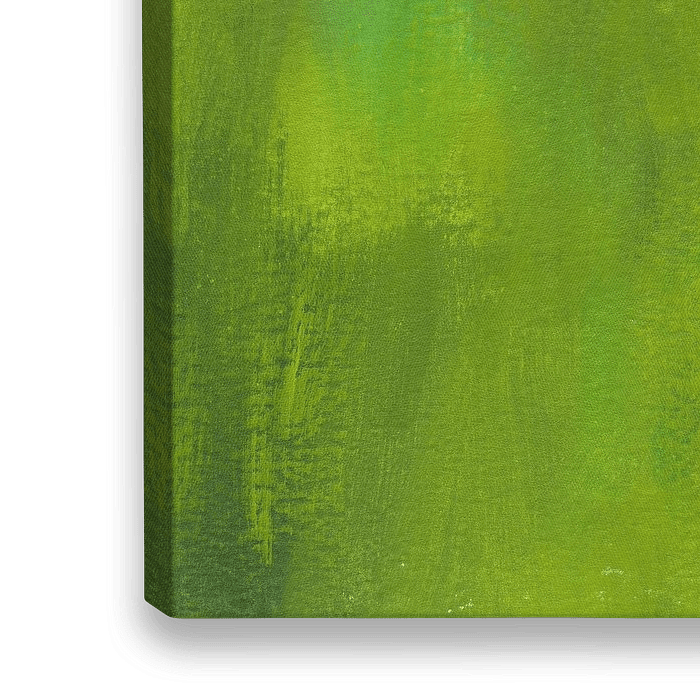 Mit lockeren strukturierten Pinselstrichen gemalt, verschmelzen lebhafte Grün- und Gelbtöne zu einer imaginären, üppigen und lebendigen vegetativen Atmosphäre.