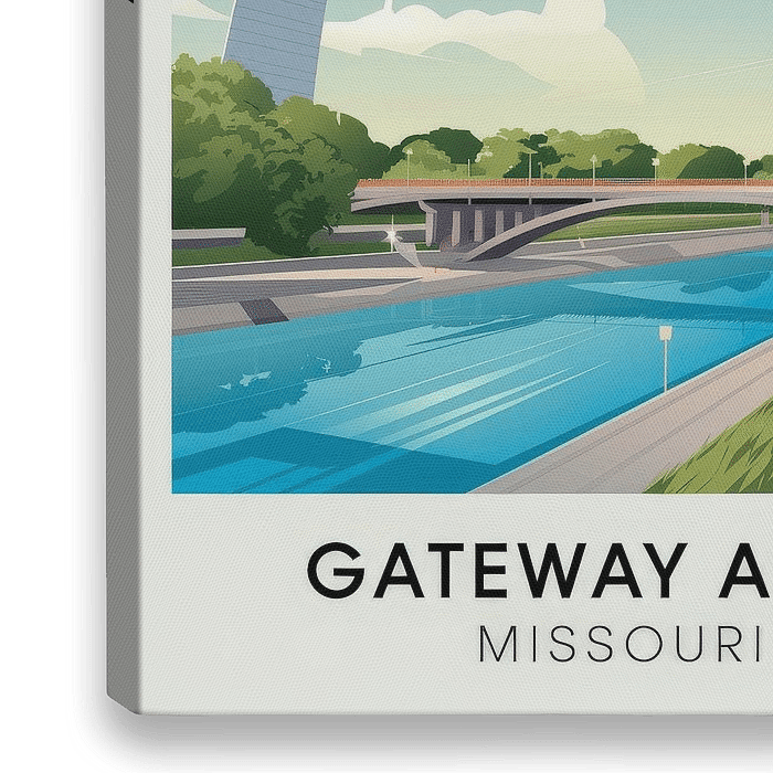 Ein strahlender Himmel umarmt den ikonischen Gateway Arch, der majestätisch über dem Wasser thront und ein Gefühl von Freiheit und Entdeckung vermittelt. Die sanften Farben und klaren Linien laden zum Träumen ein und verleihen jedem Raum eine inspirierende Note. Perfekt für ein Wohnzimmer, das zum Entspannen und Nachdenken einlädt.