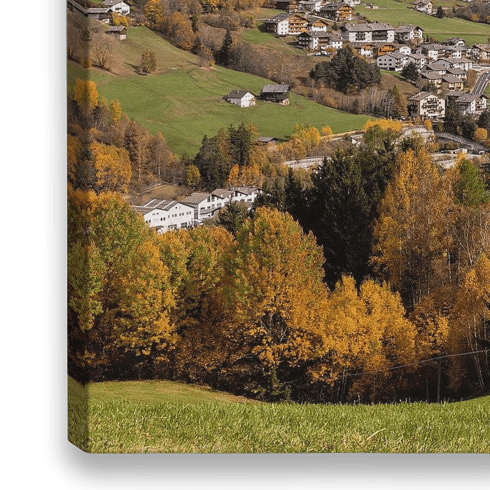 Blick auf den berühmten Wintersportort St. Ulrich /Ortisei. Der Ort befindet sich in schöner Lage im 'Grödnertal' in den Dolomiten. Das Bild wurde im Herbst mit vielen goldfarbenen Bäumen aufgenommen.