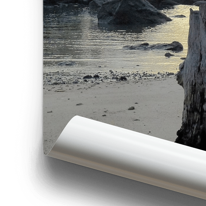 Dieses außergewöhnliche Poster zeigt einen verwitterten Baumstumpf, der trotzig am Ufer eines Strandes steht, umgeben von der dramatischen Kulisse des Meeres und der untergehenden Sonne. Das Bild trägt den passenden Titel „Still Standing“, denn es symbolisiert Widerstandskraft, Vergänglichkeit und gleichzeitig die unerschütterliche Schönheit der Natur.