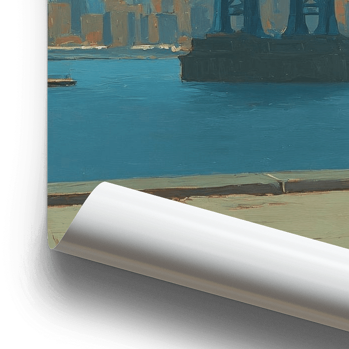 Eine Frau im roten Kleid sitzt einsam auf einer Bank am Ufer von Brooklyn. Vor ihr spannt sich die monumentale Silhouette der Manhattan Bridge über den East River und verbindet zwei Welten: das ruhige, beinahe introspektive Ufer, an dem sie verweilt, und die geschäftige Skyline von Manhattan in der Ferne. Der Kontrast zwischen der…
