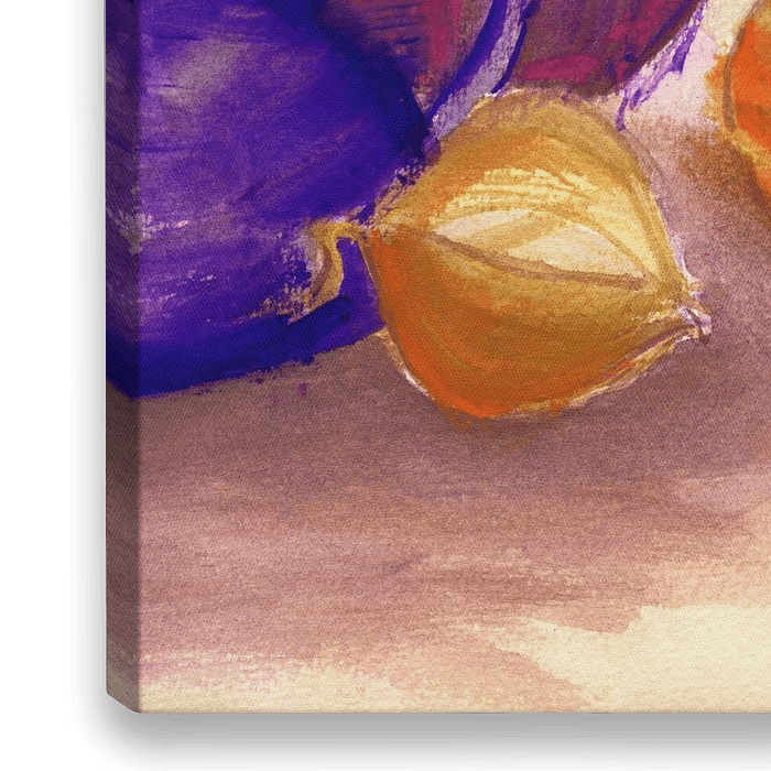 Bestelle dieses Stilleben Stillleben - Krüge und Zwiebeln 1 von Claudia Gründler als Reproduktion auf Leinwand, Alu-Dibond, als Poster, Fototapete oder Acrylglasbild.