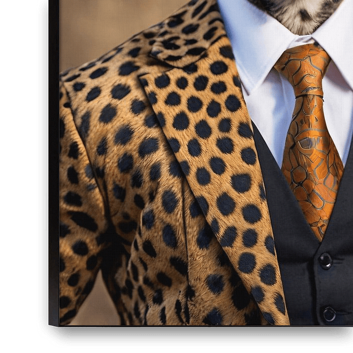 Bestelle das Foto Stilvoller Gepard im Anzug von Art & Soul Creations als Reproduktion auf Leinwand, Alu-Dibond, als Poster, Fototapete oder Acrylglasbild.