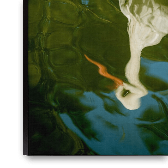 Bestelle dieses Vögel Wandbild Storch im Teich von Blond Beeld als Reproduktion auf Leinwand, Alu-Dibond, als Poster, Fototapete, ArtFrame oder Acrylglasbild, maßgefertigt in höchster Qualität.