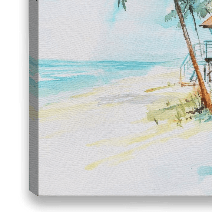 Bestelle diese Malerei Strandwacht Palmen von Poster Art Shop als Reproduktion auf Leinwand, Alu-Dibond, als Poster, Fototapete oder Acrylglasbild.
