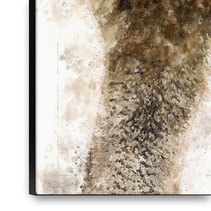 Ihre gewählte Kunst auf Leinwand, gespannt in einem Aluminiumrahmen. Schnell und einfach austauschbar für eine frische Ausstrahlung und ganz nach Ihren Wünschen.