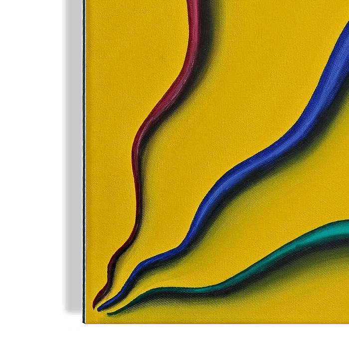 Dieses Bild wurde mit Ölfarben auf Leinwand gemalt. Die Streifen zeigen die Grundfarben der additiven Farbmischung.