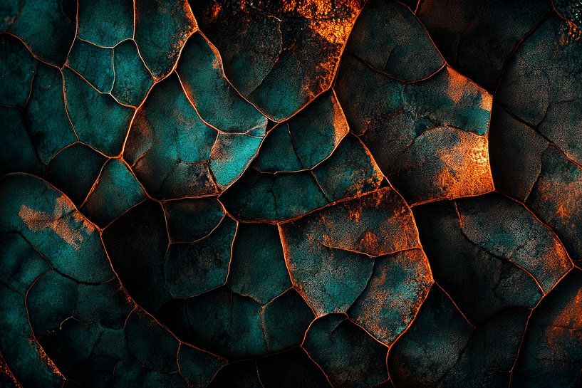 Eine faszinierende texturreiche Fläche, die mit ihrem Zusammenspiel aus tiefen, schimmernden Blau- und Petroltönen begeistert. Die Risse und Linien erzählen Geschichten der Zeit, während warme Lichtakzente einen eindrucksvollen Kontrast schaffen. Dieses Kunstwerk findet im Wohnzimmer oder der Kreativküche seinen perfekten Platz und…