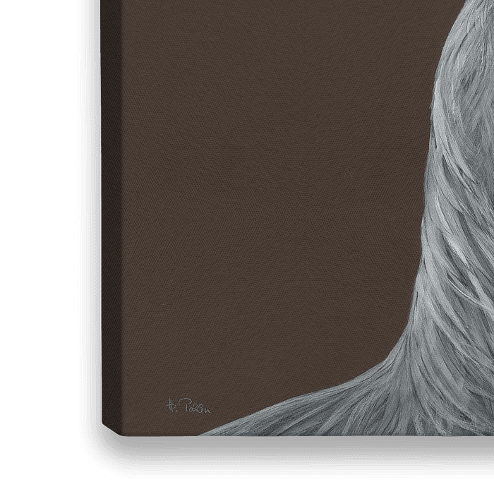 Drei soziale Südafrika-Kronenkraniche scheinen die gleiche Beobachtung zu machen. Der dunkelbraune Hintergrund hebt ihre charakteristischen, büschelartigen Kronenfedern hervor. Der Südafrikanischer Kronenkranich steht auf der Roten Liste gefährdeter Arten der IUCN. Die Rote Liste gefährdeter Arten ist die Grundlage für die Schwerpunktsetzung im Artenschutz. Gemalt mit Schmincke-Aquarellfarben auf Hahnemühle-Papierbogen „Britannia“.