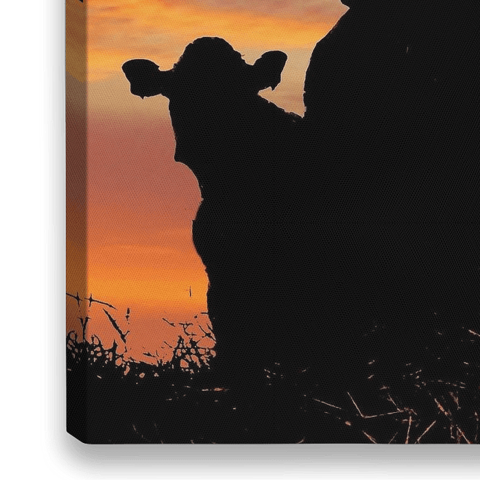 Bestelle dieses Kuh-Wandbild Sunset Cows von Annemieke van der Wiel als Reproduktion auf Leinwand, Alu-Dibond, als Poster, Fototapete oder Acrylglasbild.