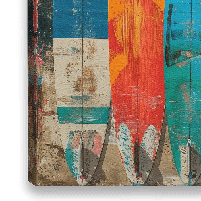 Bestelle dieses abstrakte Wandbild Surfbretter von ARTemberaubend als Reproduktion auf Leinwand, Alu-Dibond, als Poster, Fototapete oder Acrylglasbild.