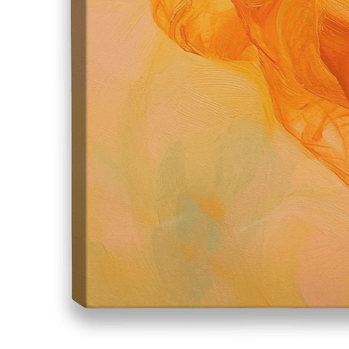 Ein lebendiges Spiel von Farben und Bewegungen entfaltet sich, während eine Frau mit wehender Kleidung in einem strahlenden, warmen Licht tanzt. Ihre Ausstrahlung verkörpert Freiheit und Lebensfreude, perfekt geeignet für das Wohnzimmer, um eine einladende und inspirierende Atmosphäre zu schaffen, die jeden Betrachter berührt.