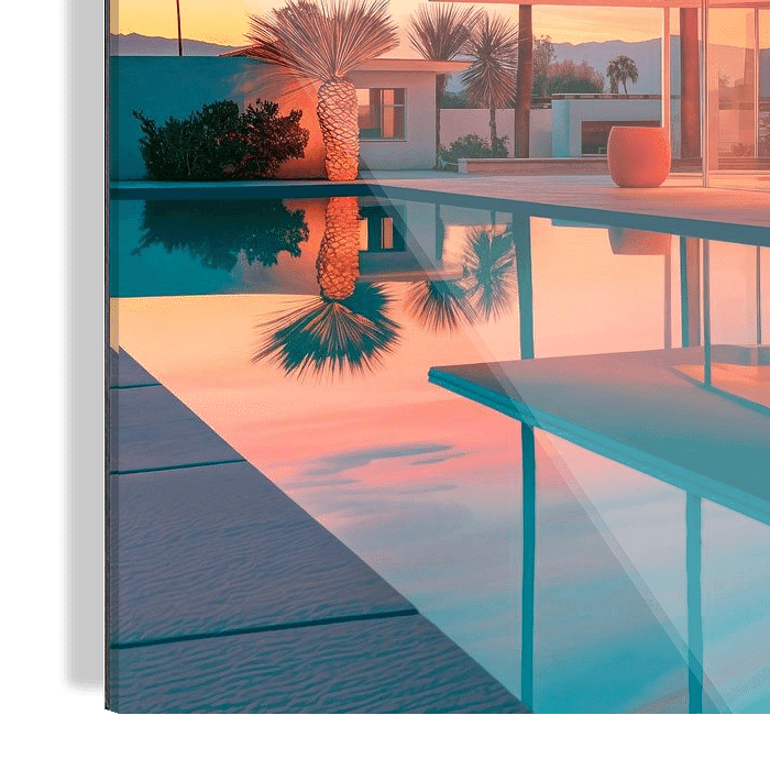 Bestelle das digitale Kunst Bild Tagesabschluss am Pool von Philippe HUGONNARD als Reproduktion auf Leinwand, Alu-Dibond, als Poster, Fototapete oder Acrylglasbild.