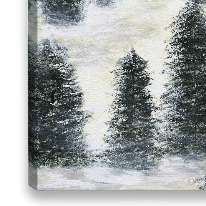 Ein Tannenwald im Schnee. Erzeugt eine wunderschöne Winterstimmung. Passt aufgrund der farblichen Neutralität in jedes Wohnzimmer.