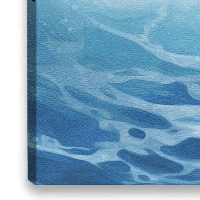 Tanz der Wellen - Dieses detaillierte Gemälde zeigt ein dynamisches Meer mit wogenden Wellen und Schaumköpfen, die das Licht einfangen und ein Gefühl von Bewegung und Raum erzeugen. Kühle Blautöne dominieren die Farbpalette, die von tiefem Marineblau bis zu sanftem Himmelblau reicht und eine beruhigende, aber dennoch kraftvolle Wirkung…