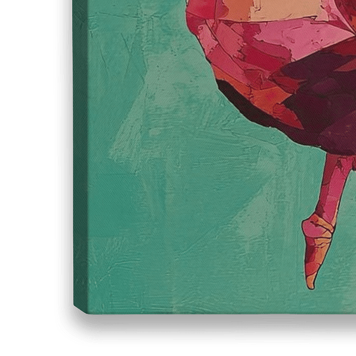 Tanzende Frau | Fließende anmutige Tänzerin - Dieses Tanzgemälde zeigt eine elegante Frau in einem farbenfrohen Kleid, die tanzt. Es ist in leuchtenden Farben wie Pink und Aqua gehalten und strahlt durch seinen abstrakten Stil Ruhe und Bewegung aus.