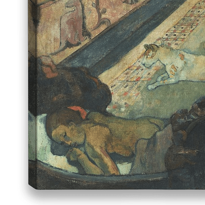 Te Rerioa, Paul Gauguin (1897) Paul Gauguin malte dieses beeindruckende Werk einige Jahre nach seiner Niederlassung auf Tahiti, einer französischen Kolonie im Südpazifik, und nur wenige Wochen nach Nevermore. Die beiden Gemälde reisten mit demselben Schiff nach Frankreich, wo sie von Gauguins Kunsthändler verkauft wurden. Der Künstler gab an, Te Rerioa in weniger als zehn Tagen gemalt zu haben, wobei er eine Verzögerung bei der Abfahrt des Schiffes ausnutzte. Die sorgfältig konstruierte Komposition, ihre Feierlichkeit und Ausgewogenheit lassen jedoch auf ein völlig spontanes Unterfangen schließen. Tatsächlich war Te Rerioa das letzte einer Reihe ehrgeiziger Gemälde, die Gauguin in den vorangegangenen Monaten gemalt hatte. Te Rerioa zeigt zwei Frauen, die in einem mit kunstvollen Holzreliefs verzierten Raum über ein schlafendes Kind wachen. Über die symbolische Bedeutung der Schnitzereien - ein sich umarmendes Paar, hybride Kreaturen und Vegetation - wurde viel spekuliert, aber wie die Beziehung der Frauen hat Gauguin sie absichtlich unklar gelassen. Er nannte das Gemälde Te Rerioa (was auf Tahitianisch "Traum" oder "Alptraum" bedeutet) und schrieb an einen Freund: "Auf dieser Leinwand ist alles ein Traum, sei es das Kind, die Mutter, der Reiter auf der Straße oder der Traum des Malers".