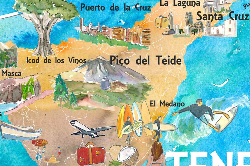 Teneriffa Kanarische Inseln Spanien illustrierte Karte mit Sehenswürdigkeiten und Highlights