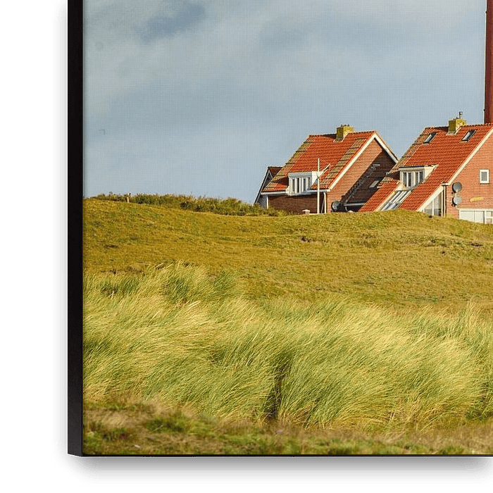 Bestelle dieses Landschafts-Wandbild Texeler Leuchtturm in den Dünen an einem stürmischen Herbstmorgen von Sjoerd van der Wal Fotografie als Reproduktion auf Leinwand, Alu-Dibond, als Poster, Fototapete oder Acrylglasbild.