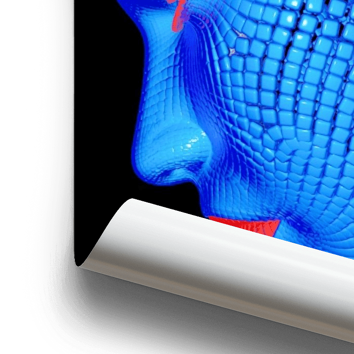“The Face” offenbart eine einzigartige Fusion von Technologie und Kunst. Die dreidimensionalen blauen Würfel mit metallischen Lichtreflexen verleihen dem Bild eine futuristische Ästhetik, die das Auge einfängt und die Vorstellungskraft anregt.