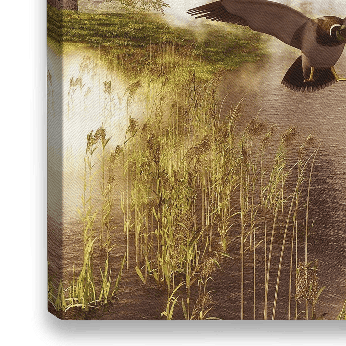 Bestelle dieses Landschafts-Wandbild Tierreich – Zwei Enten in einem Teich von Jan Keteleer als Reproduktion auf Leinwand, Alu-Dibond, als Poster, Fototapete oder Acrylglasbild.