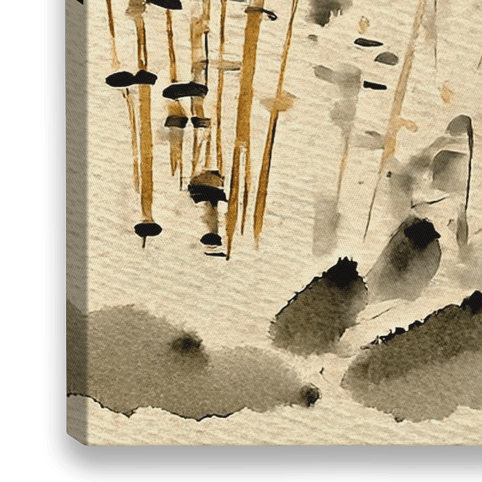 Bestelle diese Malerei Tinten-Aquarell: Orientalisches Teehaus mit Bambus im Sumi-e-Stil von Studio Pieternel als Reproduktion auf Leinwand, Alu-Dibond, als Poster, Fototapete oder Acrylglasbild.
