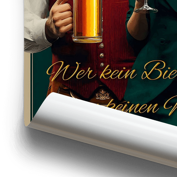 Das Plakat versprüht den Charme der 1930er Jahre und lädt zum stilvollen Genuss ein. Im Mittelpunkt stehen eine elegante Dame und ein gut gekleideter Herr, die sich in geselliger Runde gegenüberstehen. Die Frau trägt ein zeittypisches Kleid mit feinen Details und hält anmutig ein gefülltes Weinglas in der Hand, während sie dem…
