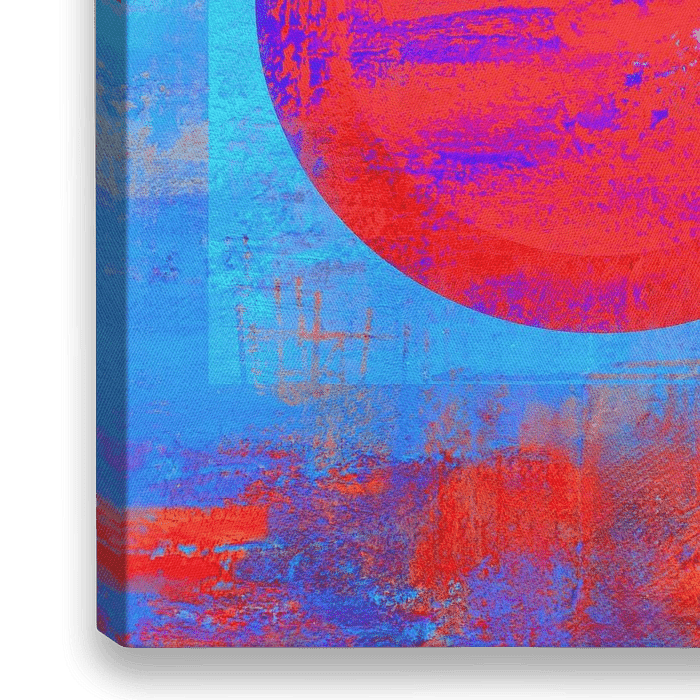 Bestelle dieses abstrakte Wandbild Traum - Kreis Blau Rot von Claudia Gründler als Reproduktion auf Leinwand, Alu-Dibond, als Poster, Fototapete oder Acrylglasbild.