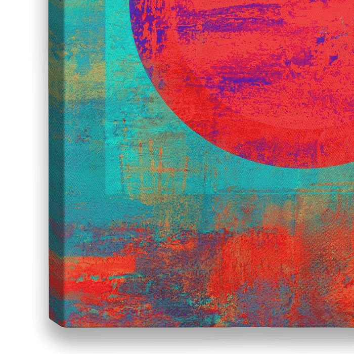 Bestelle dieses abstrakte Wandbild Traum - Kreis Grün Rot Orange von Claudia Gründler als Reproduktion auf Leinwand, Alu-Dibond, als Poster, Fototapete oder Acrylglasbild.