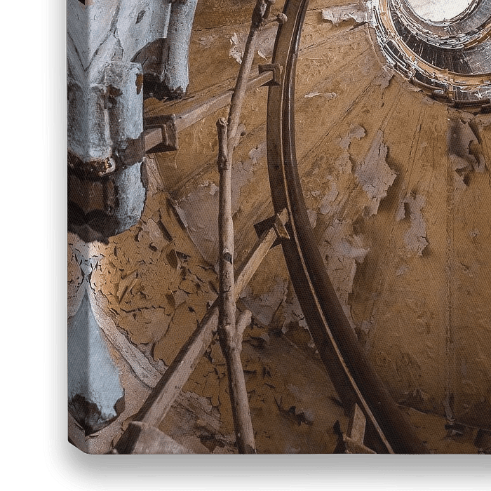 Dies ist ein Bild, das ich in einem verlassenen Theater aufgenommen habe, das zu einem Hotel gehört. Wegen eines Brandes ist das Gebäude geschlossen und in starkem Verfall begriffen. Diese Treppe ist jedoch noch in einem sehr guten Zustand und gibt ein schönes Bild ab.