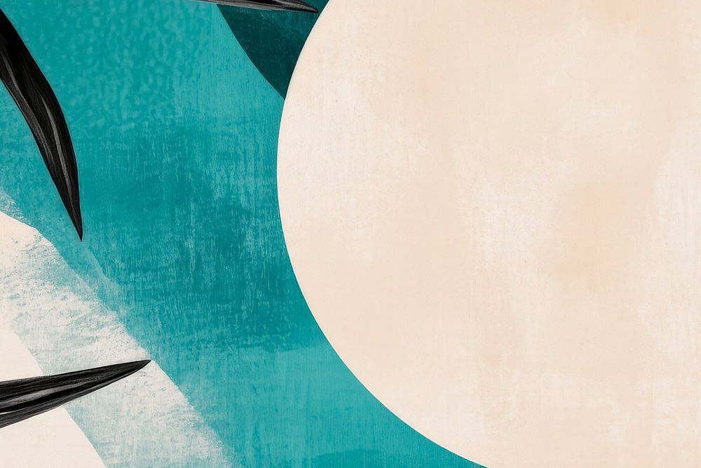 Ein harmonisches Zusammenspiel aus sanften Farben und geometrischen Formen erweckt eine entspannte, tropische Atmosphäre. Die warmen Orangetöne und lebhaften Grüntöne schaffen sofort Urlaubsgefühle, während die stilisierten Blätter für einen Hauch von Natur sorgen. Dieses Kunstwerk eignet sich hervorragend für das Wohnzimmer, um eine einladende und fröhliche Stimmung zu erzeugen.