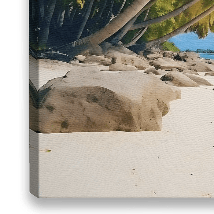 Bestelle das digitale Kunst Bild Tropische Insel von PixelPrestige als Reproduktion auf Leinwand, Alu-Dibond, als Poster, Fototapete oder Acrylglasbild.