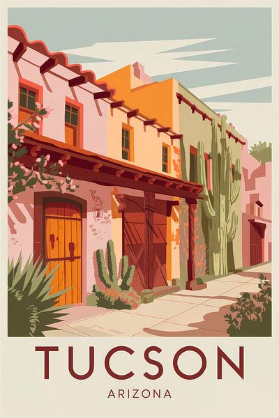 Bestelle diese Illustration Tucson, Arizona Vintage Travel Poster von Poster Art Shop als Reproduktion auf Leinwand, Alu-Dibond, als Poster, Fototapete oder Acrylglasbild.