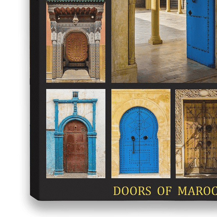 Collage mehrerer beeindruckender und bunter sowie orientalischer Türen und Portale in Marokko in Rabat in Marrakesch Fes und Tanger