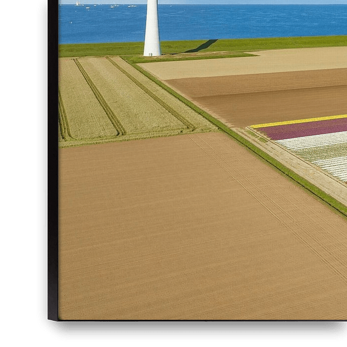 Bestelle dieses Blumen-Wandbild Tulpen auf landwirtschaftlichen Feldern mit Windrädern im Hintergrund von Sjoerd van der Wal Fotografie als Reproduktion auf Leinwand, Alu-Dibond, als Poster, Fototapete oder Acrylglasbild.