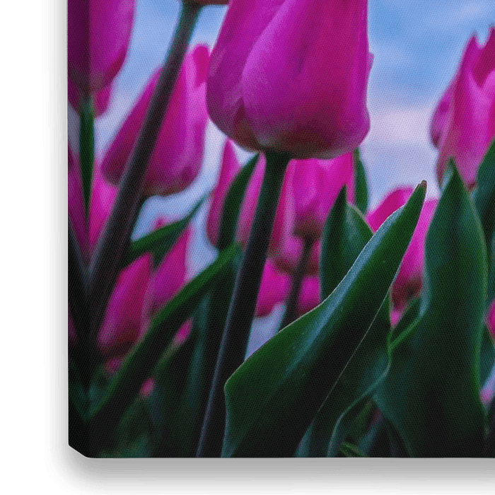Bestelle dieses Landschafts-Wandbild Tulpen in der Luft von Dennis Donders als Reproduktion auf Leinwand, Alu-Dibond, als Poster, Fototapete oder Acrylglasbild.