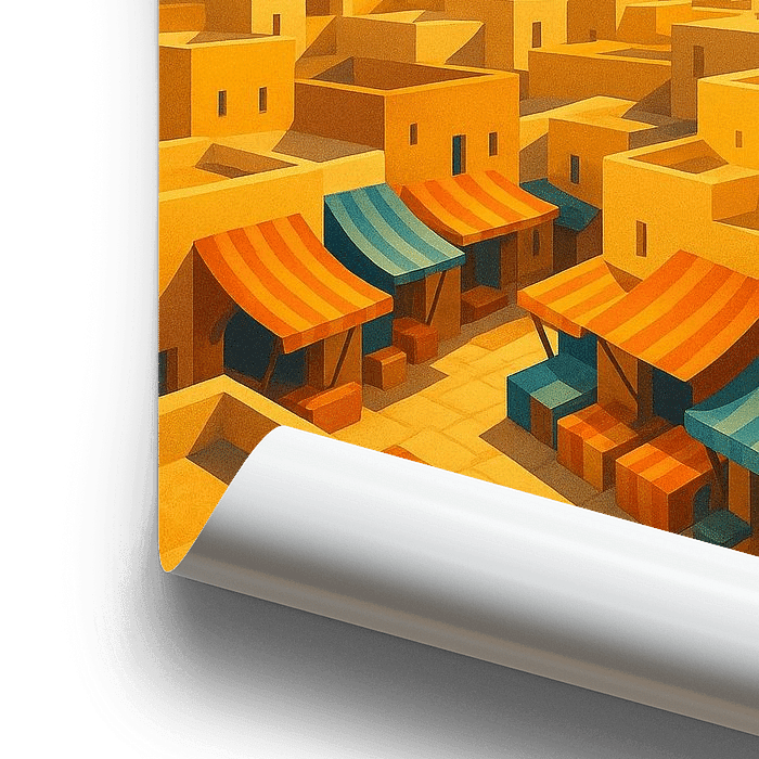 Tunis Sunlit Medina ist ideal für Liebhaber mediterraner Kunst, marokkanisch-tunesischen Designs und Vintage-Reisedekor und bringt die Wärme Nordafrikas in Ihr Interieur. Hängen Sie es auf, um einen Raum voller Licht, Handwerkskunst und Geschichte zu schaffen - eine visuelle Einladung, durch die engen Gassen zu schlendern, wo Tradition auf zeitlose Eleganz trifft.
