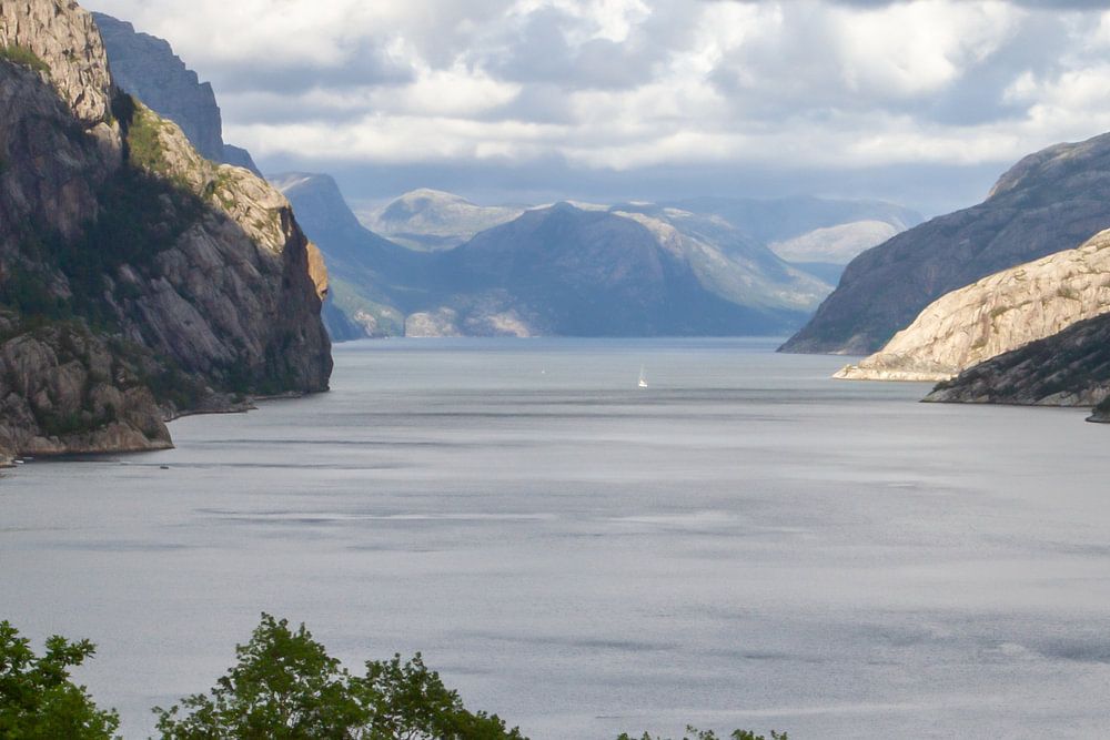 ein Blick auf den Lyseboth-Fjord in Norwegen.