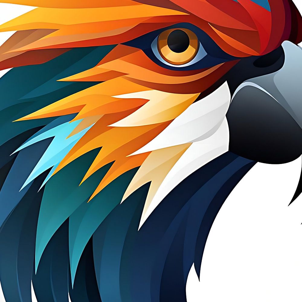 In einer von Rob Janoff inspirierten Vektorzeichnung eines Papageis kommt die Farbenpracht dieses exotischen Vogels zum Vorschein. Mit fließenden Linien und leuchtenden Farben erwachen sein auffälliges Gefieder und seine ausdrucksstarken Augen zum Leben. Ein Kunstwerk, das die Lebendigkeit und den verspielten Charme des Papageis auf moderne und ausdrucksstarke Weise verkörpert.